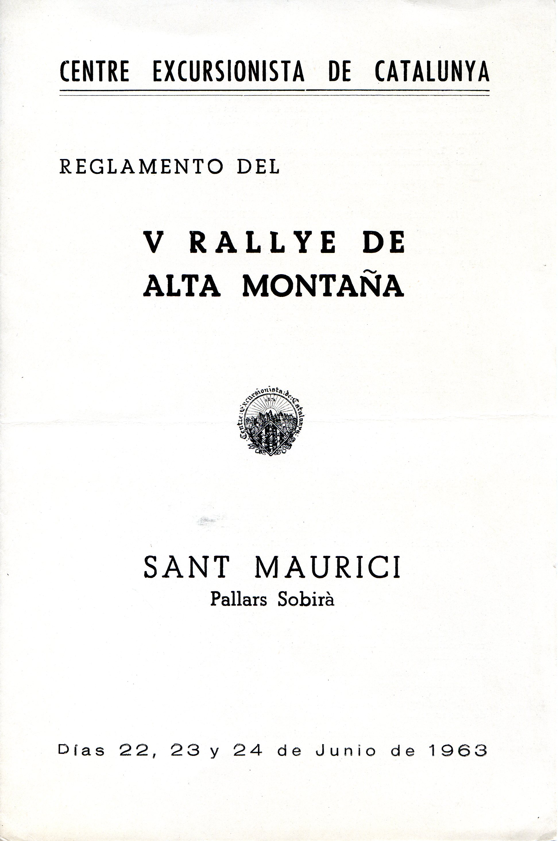 Reglamento del V Rallye de alta montaña : Sant Maurici Pallars Sobirà : Días 22, 23 y 24 de junio de 1963
