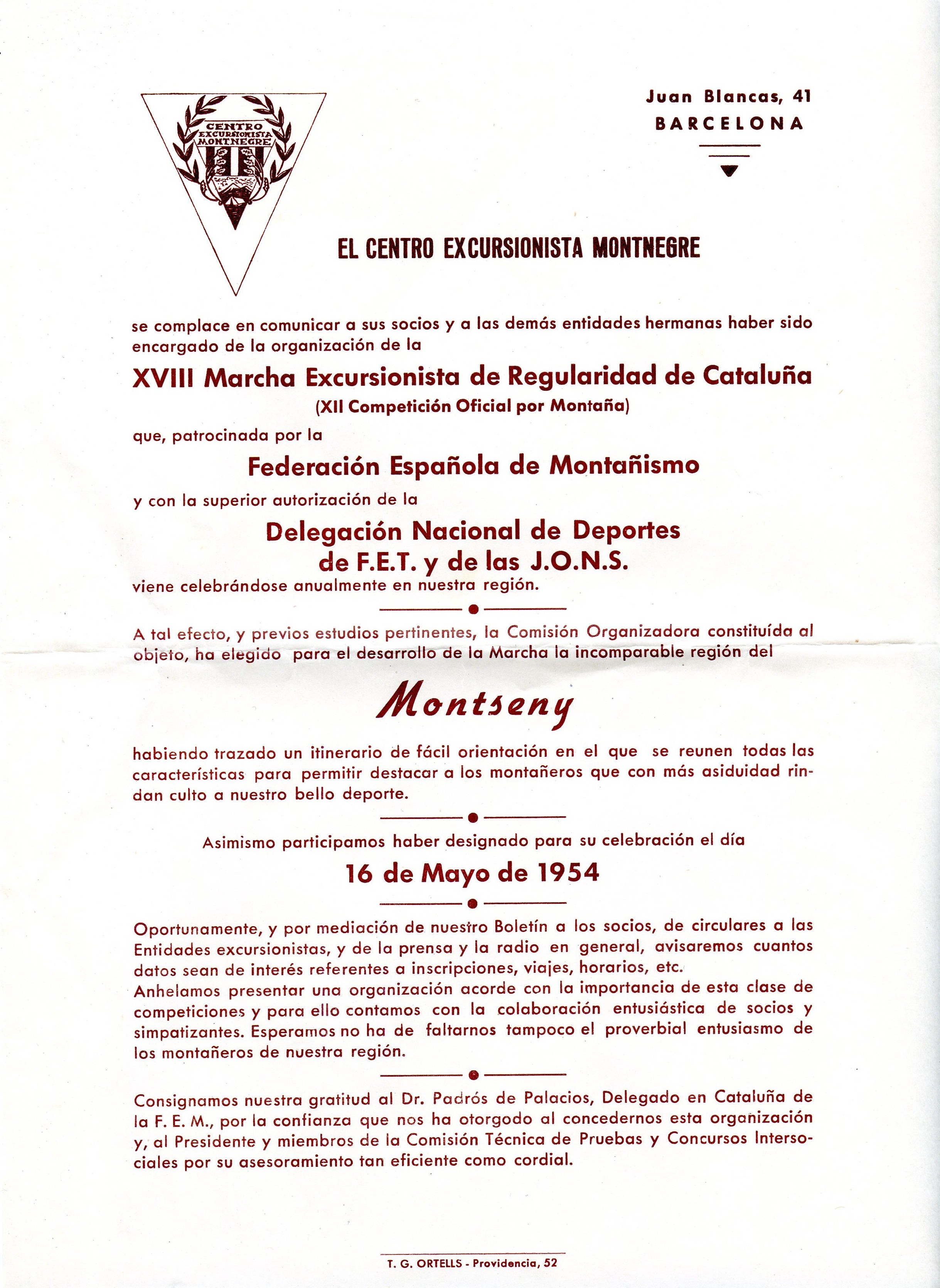 XVIII Marcha Excursionista de Regularidad de Cataluña : XII Competición Oficial por Montaña