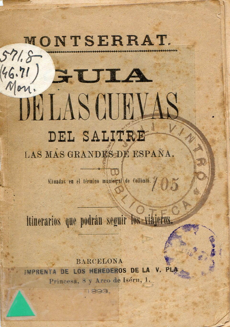 Montserrat : Guia de las Cuevas del Salnitre las mas grandes de España : Situadas en el términomunicipalde Collbató : Itinerariosque podrán seguirlos viajeros
