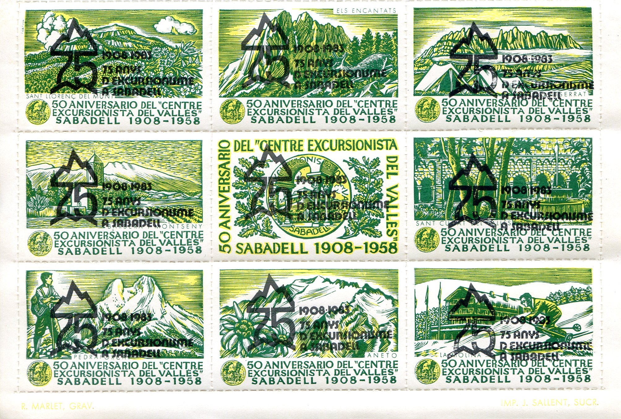 - Segells / Filatèlia / Sant Llorenç del Munt / Els Encantats / Montserrat / Montseny / Barberà / Centre Excursionista del Vallès / Sant Cugat del Vallès / Pedraforca / Aneto / La Molina