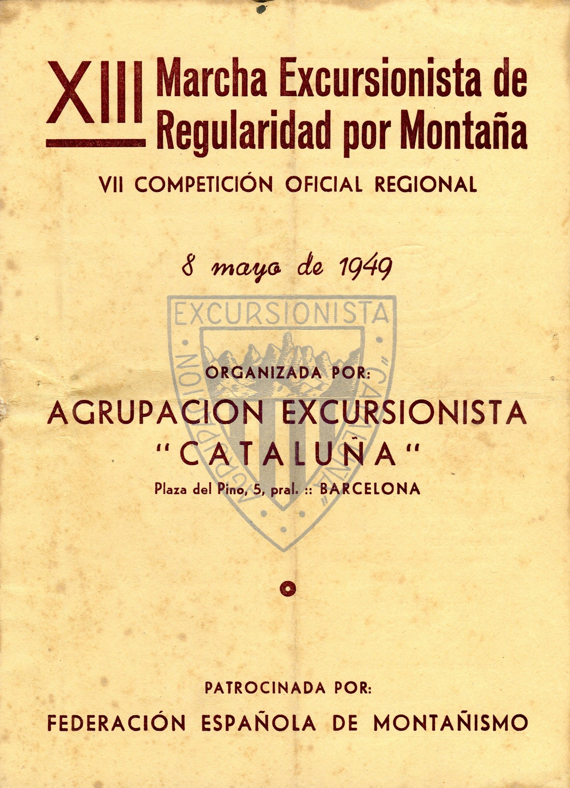 XIII Marcha Excursionista de Regularidad por Montaña : VII Competición Oficial Regional : 8 mayo de 1949