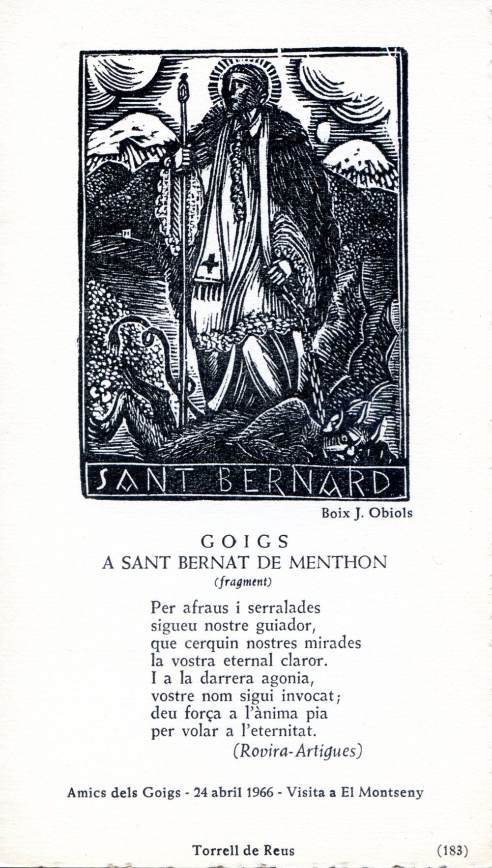 - Paper / Estampa / Espiritualitat / Goigs / Sant Bernat de Menthon / Gravats / Xilografia / Montseny