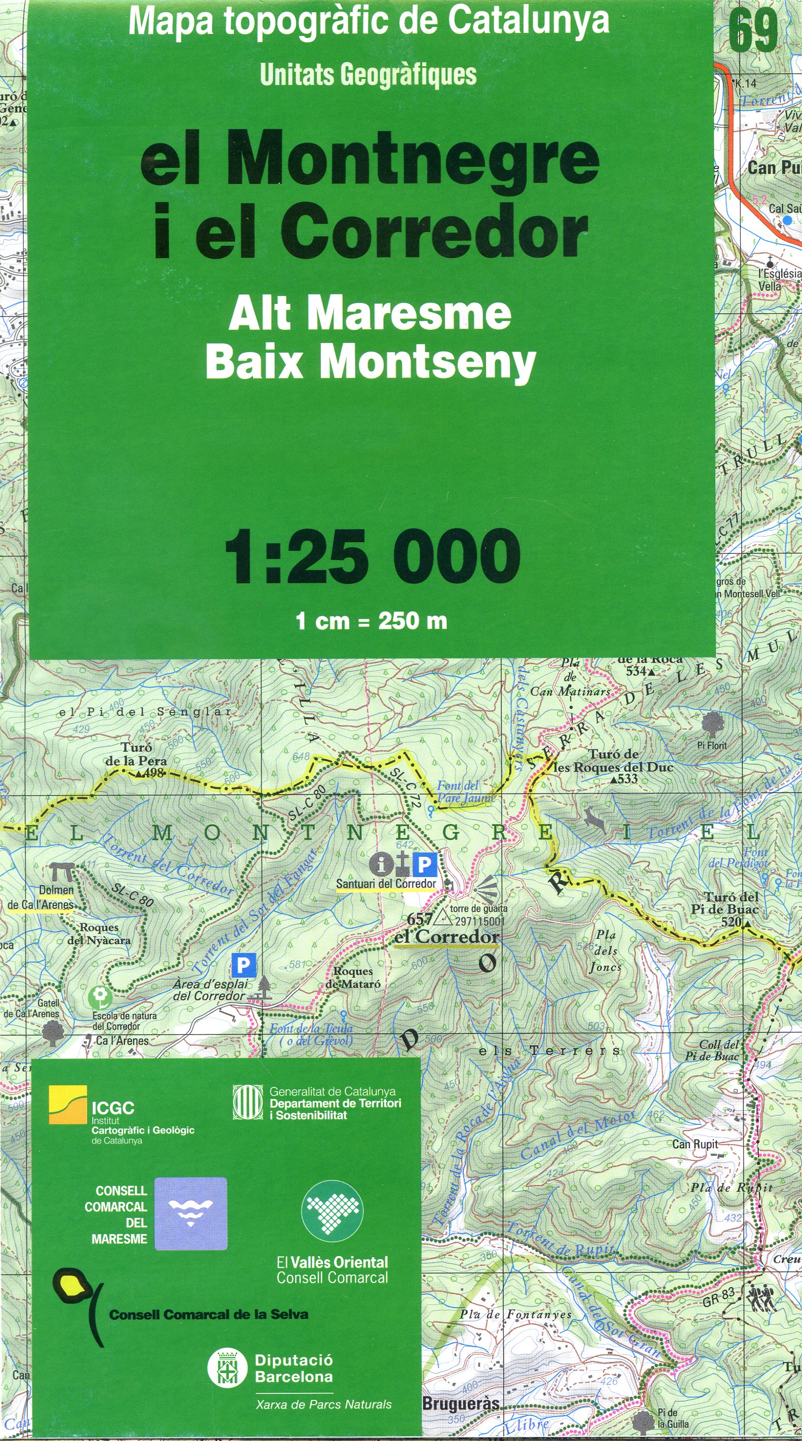 - Cartografia / Mapa topogràfic 1:25.000 / Montnegre / Corredor / Maresme / Vallès Oriental / Serralada Litoral