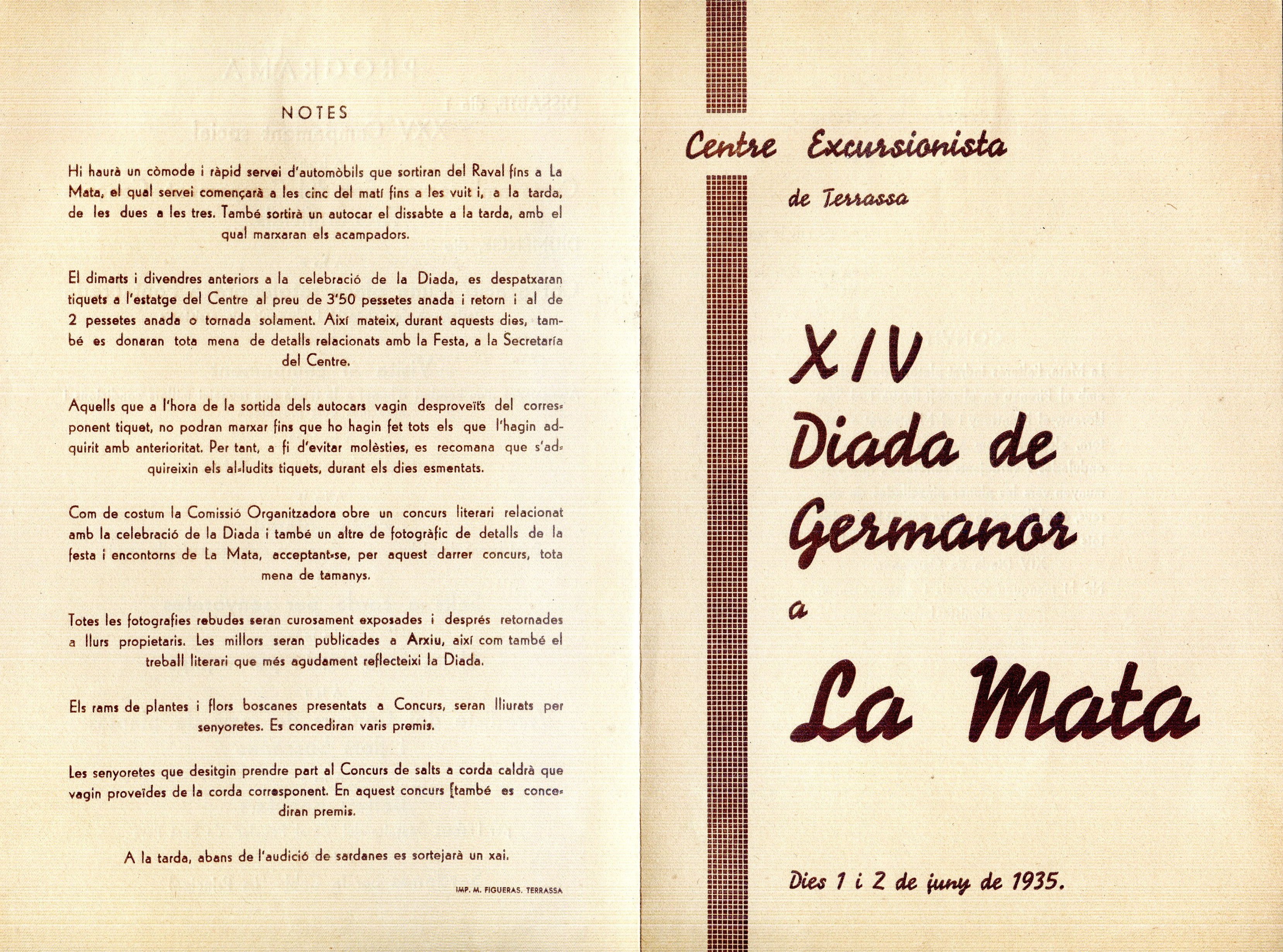 XIV Diada de Germanor a La Mata : Dies 1i 2 de juny de 1935