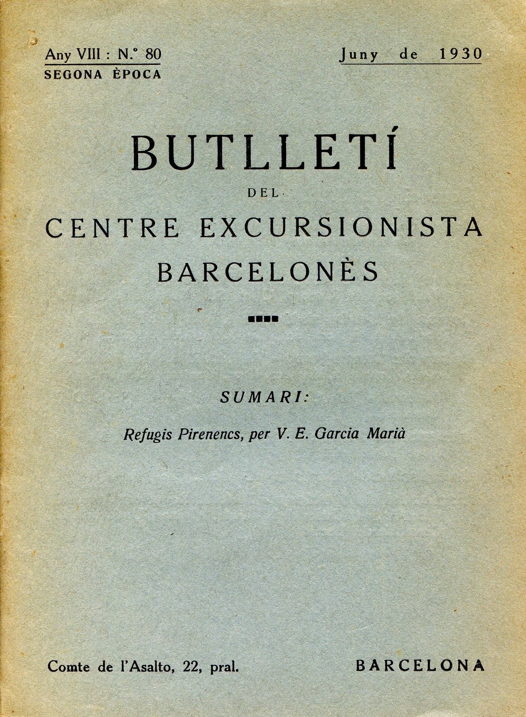 Monogràfic sense cap altre temàtica, posteriorment es publicà com a separata del butlletí