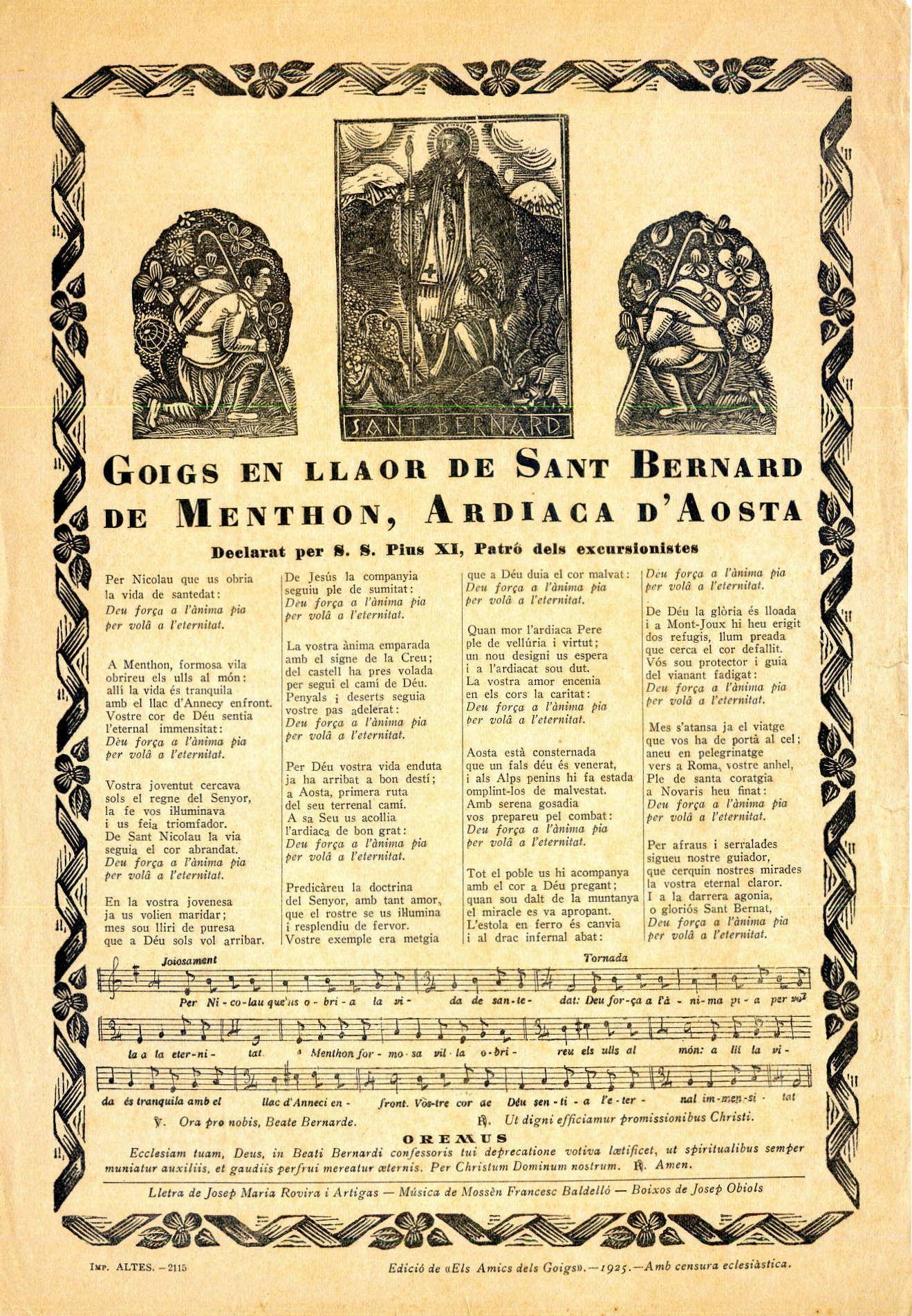 Segurament el 1r goig català dedicat al patró dels excursionistes