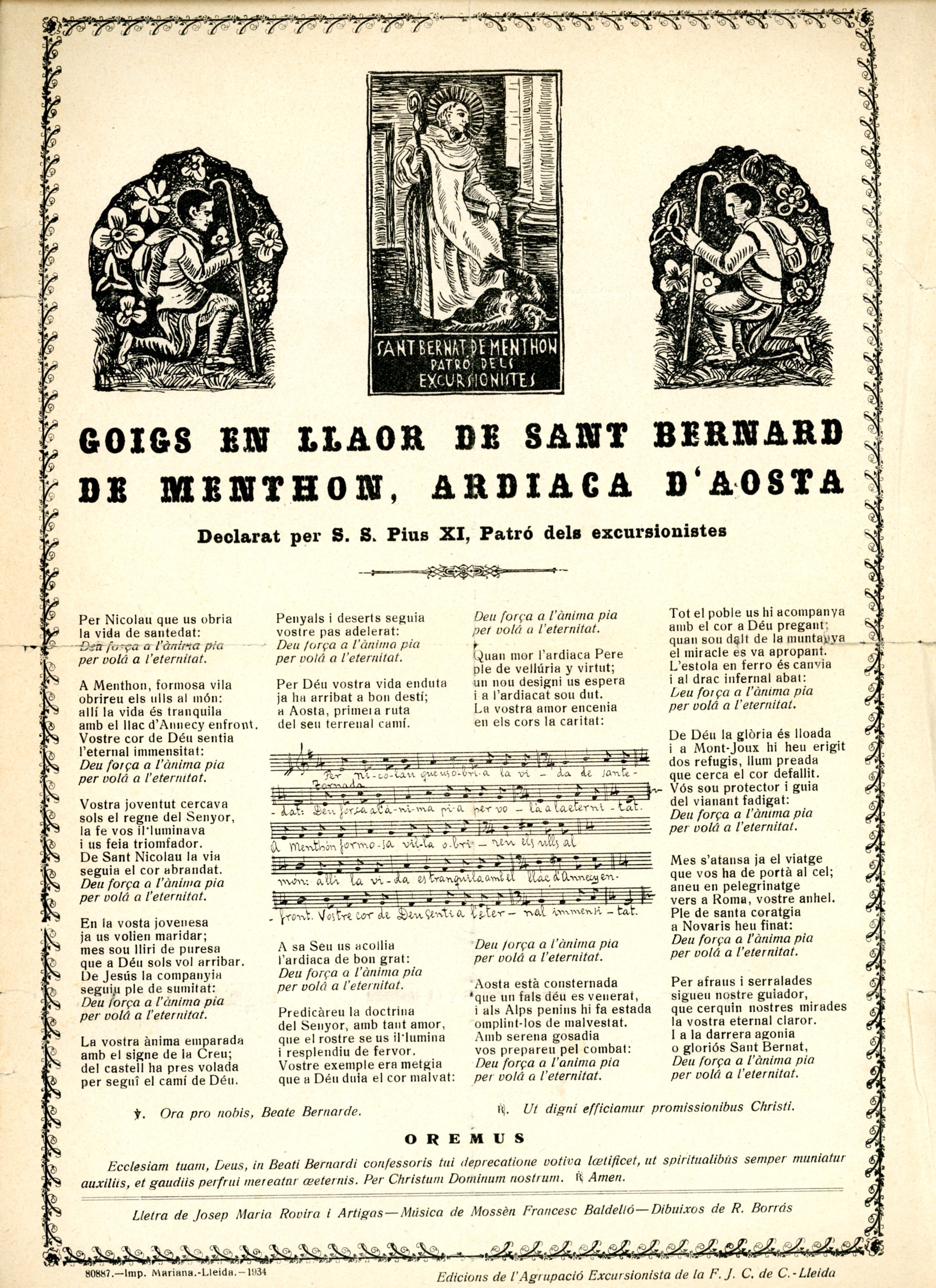 Goigs en llaor de Sant Bernard de Menthon, ardiaca d'Aosta : Declarat per S. S. Pius XI, Patró dels excursionistes