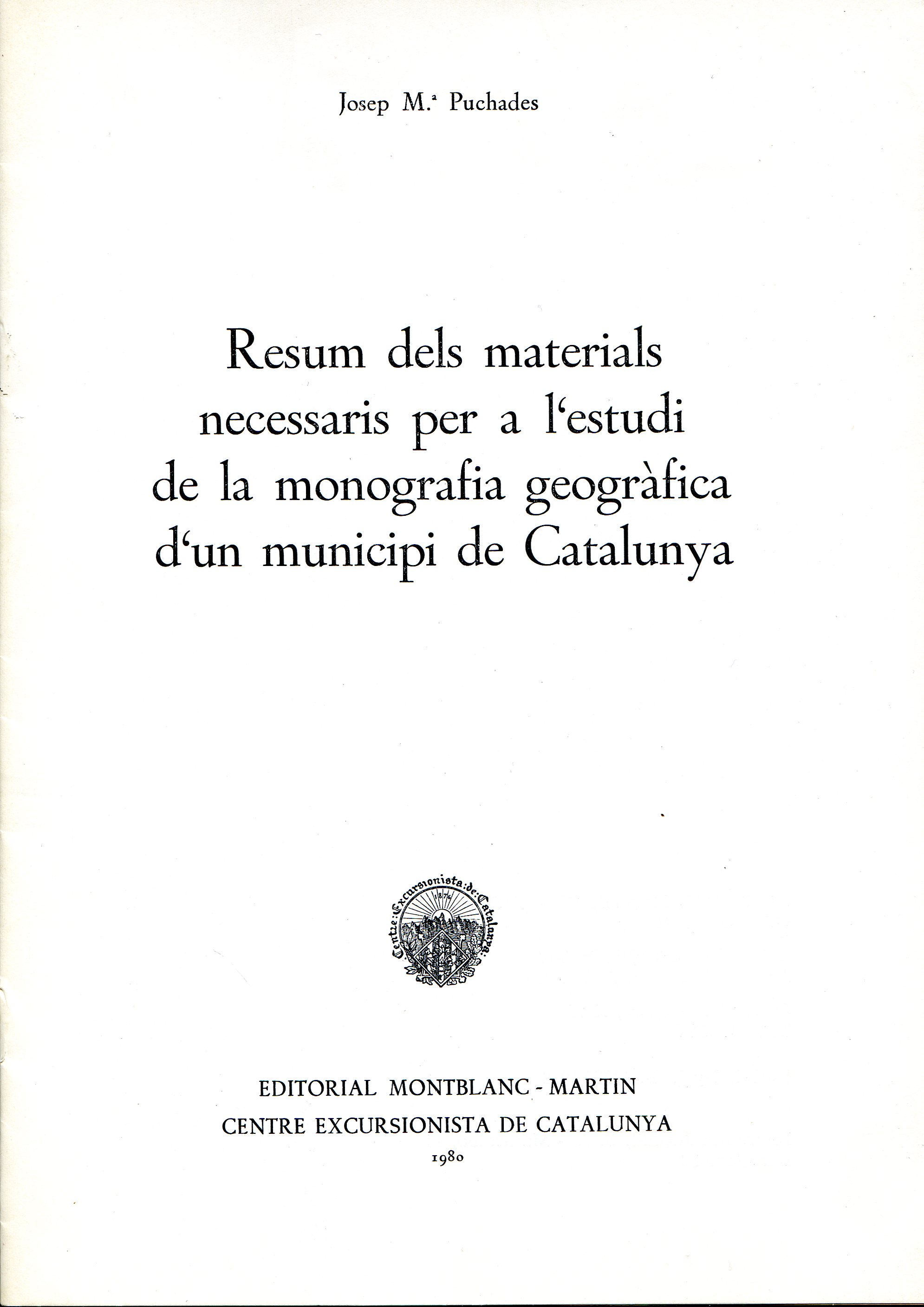Resum dels materials necessaris per a l'estudi de la monografia geogràfica d'un municipi de Catalunya