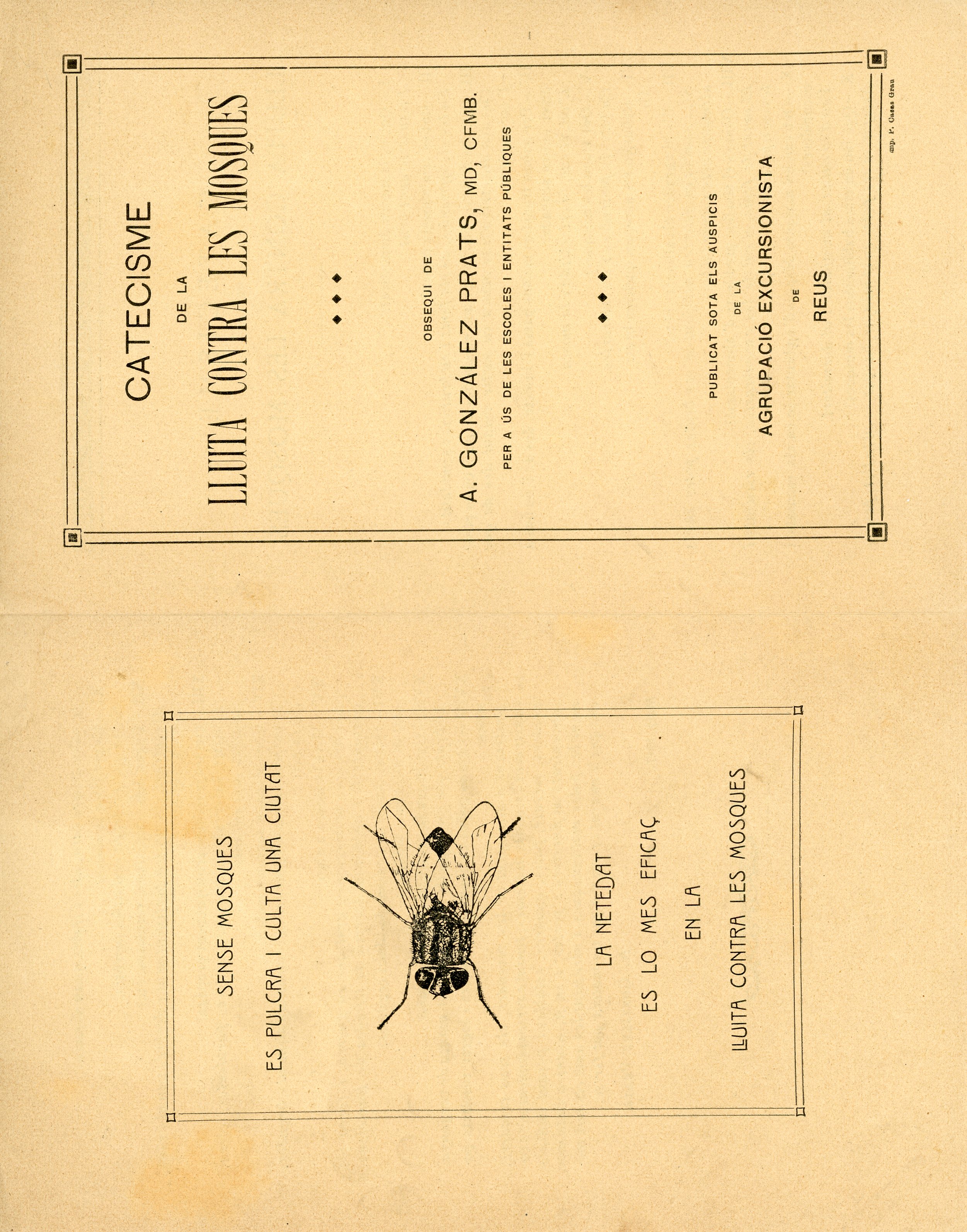 Opuscle editat amb motiu de l'acte de més relleu i ressò de l'entitat en aquest any que fou la segona exposició de la lluita contra les mosques que visità unes 10.000 persones. mosques oberta el 25 de juliol de 1917